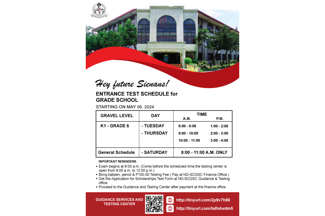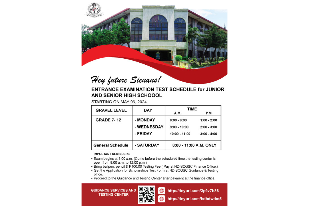 ND-SIENA COLLEGE GENSAN SCHOOL ANNOUNCEMENT